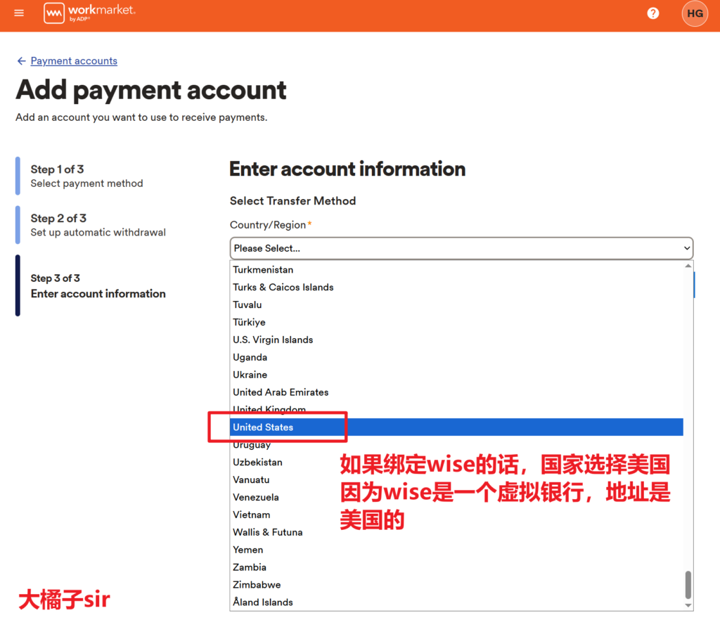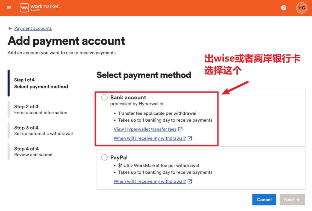 Wise绑定Workmarket出金细节